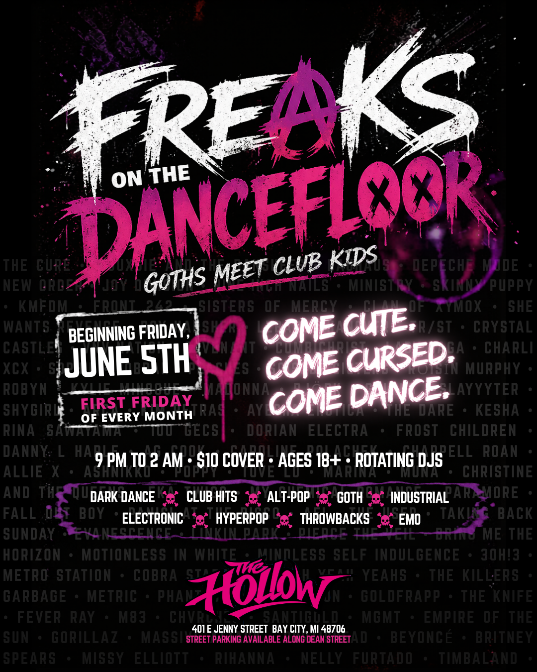 From comedy nights and karaoke to workshops, markets, mixers, themed parties, private productions, and experimental entertainment, The Hollow calendar is built to keep Bay City interesting.